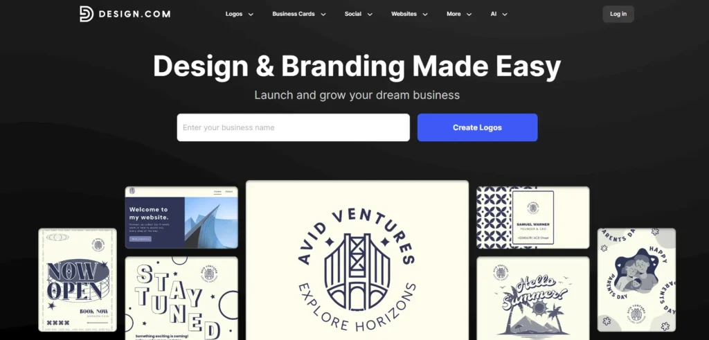 Design.com is a strong option as the best AI logo maker for business because it provides professional-looking logos, brand kits and multiple file formats suitable for commercial use.