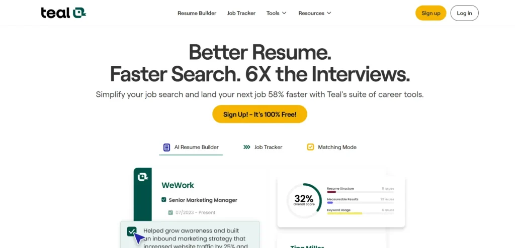 Teal is more than a resume builder – it’s a full job search dashboard.